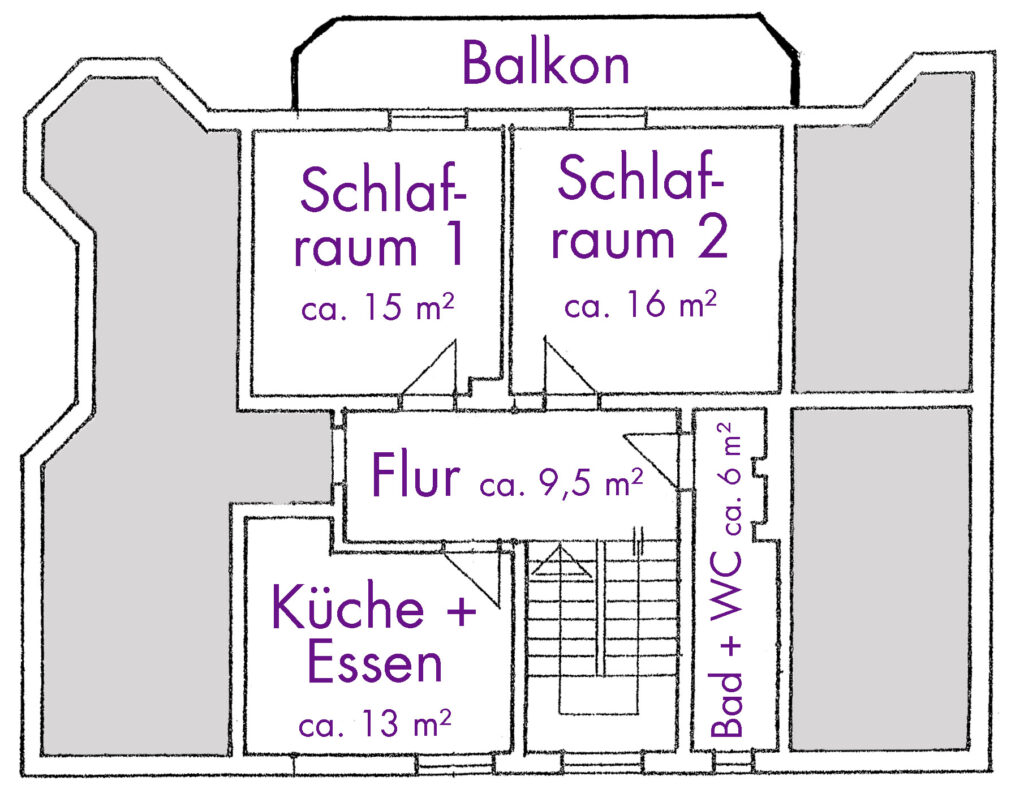 Wohnung 4: Wohnung 3 + DZ mit DU/WC – ca. 80 m²